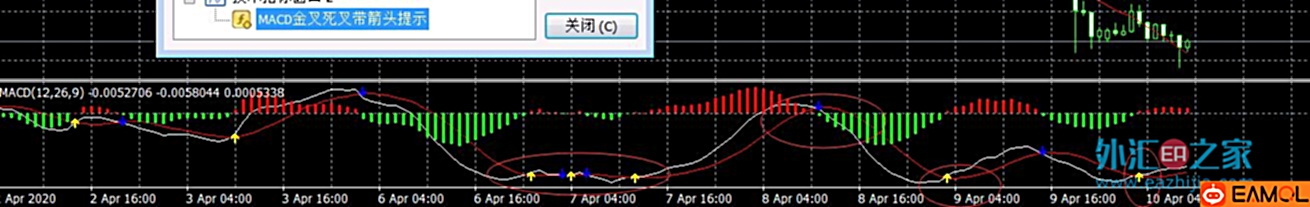 MACD金叉死叉带箭头提示;作用;可以提示买卖点;看背离;比较实用的指标,安装后如图: