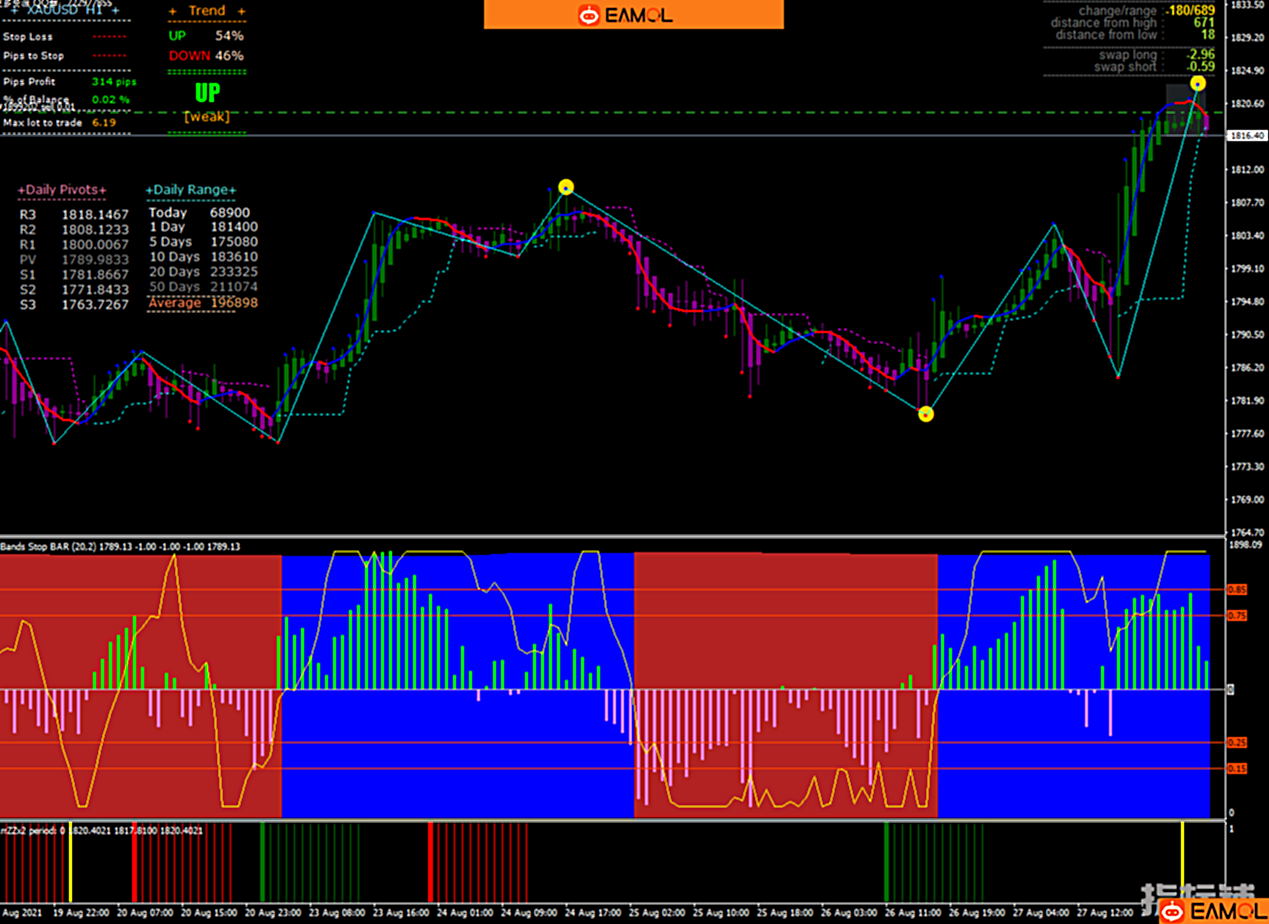 黄金外汇原油指数指标,适合刷单,震荡,剥头皮,对冲,套利,趋势,马丁等。无时间限制,相当的可以牛逼,谁用谁知道,欢迎下载测试。