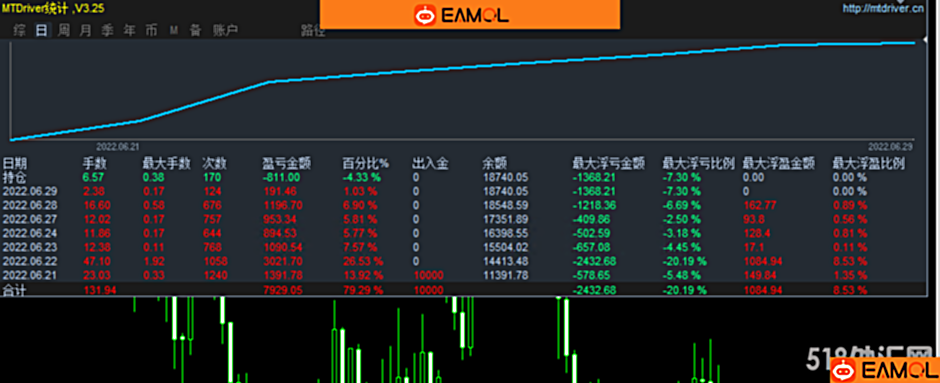 顺势EA 一款黄金货币都可以跑的顺势策略,顺势挂单,EA不仅单量多盈利能力一点也不含糊。刷单盈利两不误,大家最关心的风控这方面也做的非常好,ea带有金额止损。