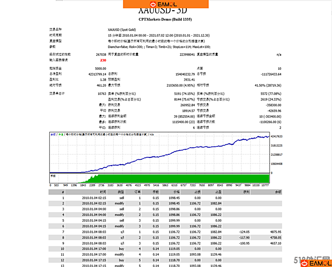 XAUUSD-3D-EA的优势: