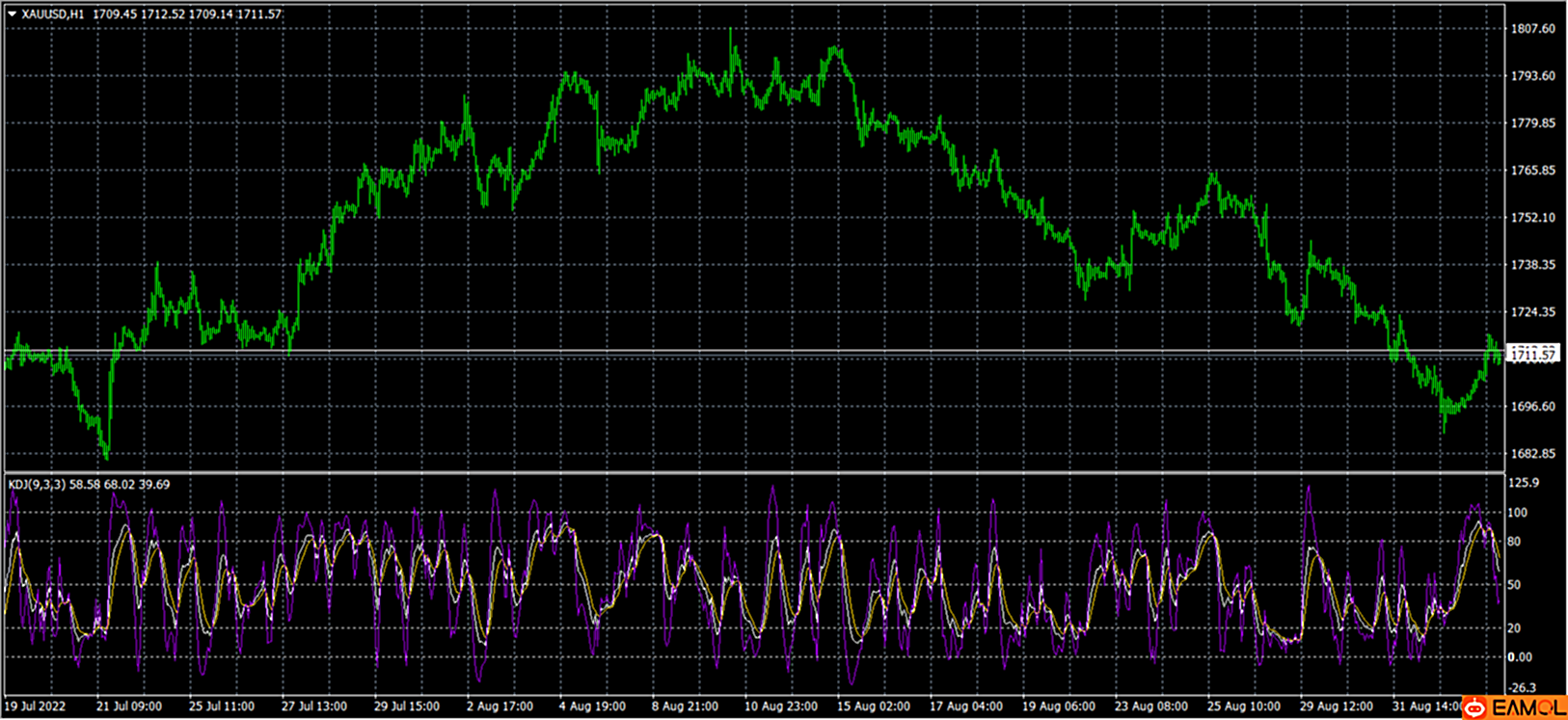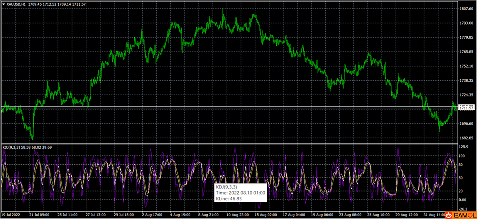 这是一款kdj三线指标,分别为快线、慢线、敏感线。当副图曲线走到20左右交叉时做多单,走到80左右交叉时做空单。我分享给大家的都是十分简单明了的指标,更好帮助大家做单,对行情的分析也是非常的有帮助的,