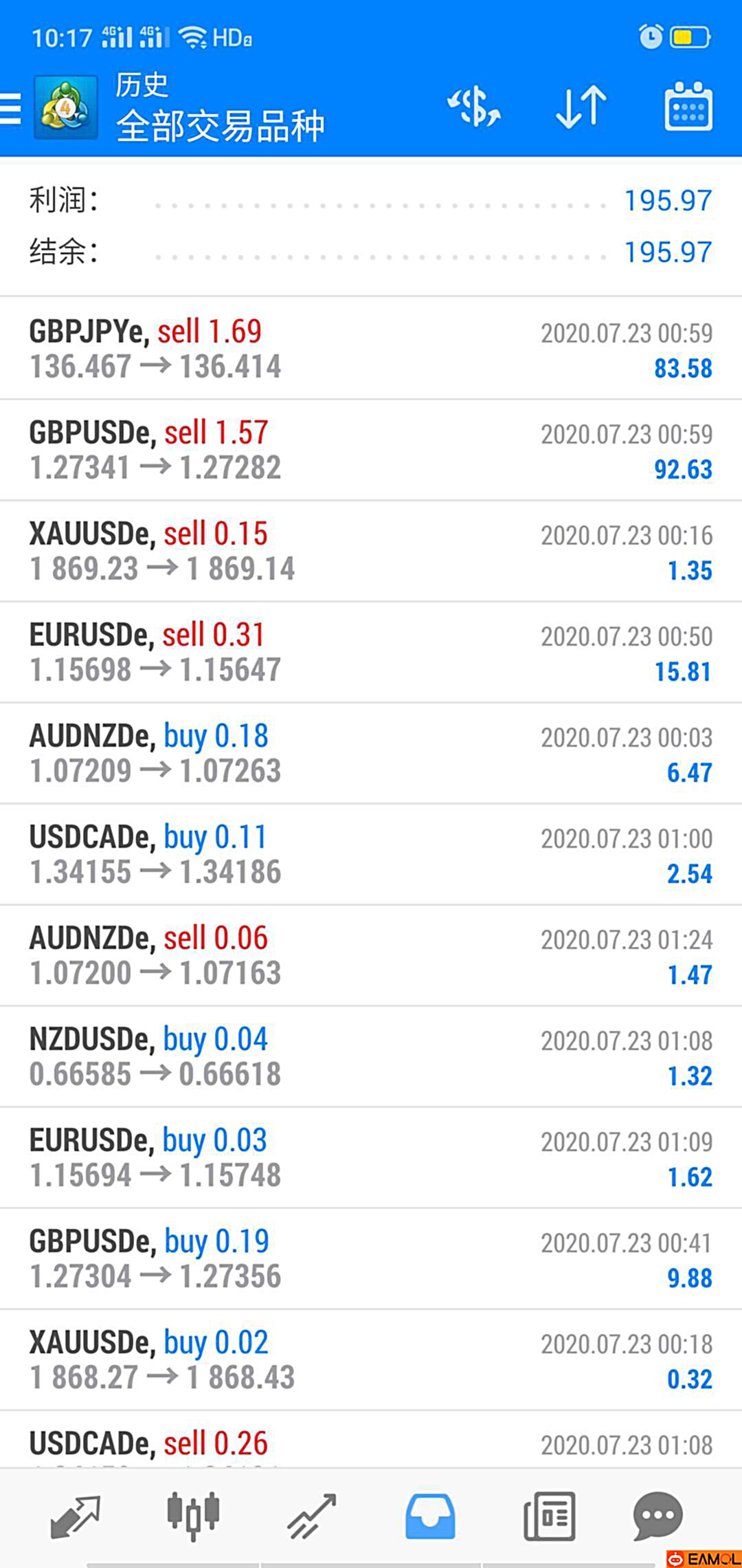 这个EA也是在朋友介绍拿到的,他只做早间趋势,然后直接盈利出局,其他时间不开单,我也在想办法 优化,但是大家也知道 ,开仓越多,风险 越大,所以目前 还在测试全天运营情况!有朋友在别的地方下载过,下过的在这就不用下了,别说是在哪哪见过。全世界难道每个行业都只能有一家吗??不可能的。相同的多,大家仁者见仁,我这也给大家测试了,附测试图而已,大家可自行下载测试,最好是趋势性比较强的品种,注意:只在凌晨开单,别一 挂着不开单就骂!无需设置参数 ,系统默认的