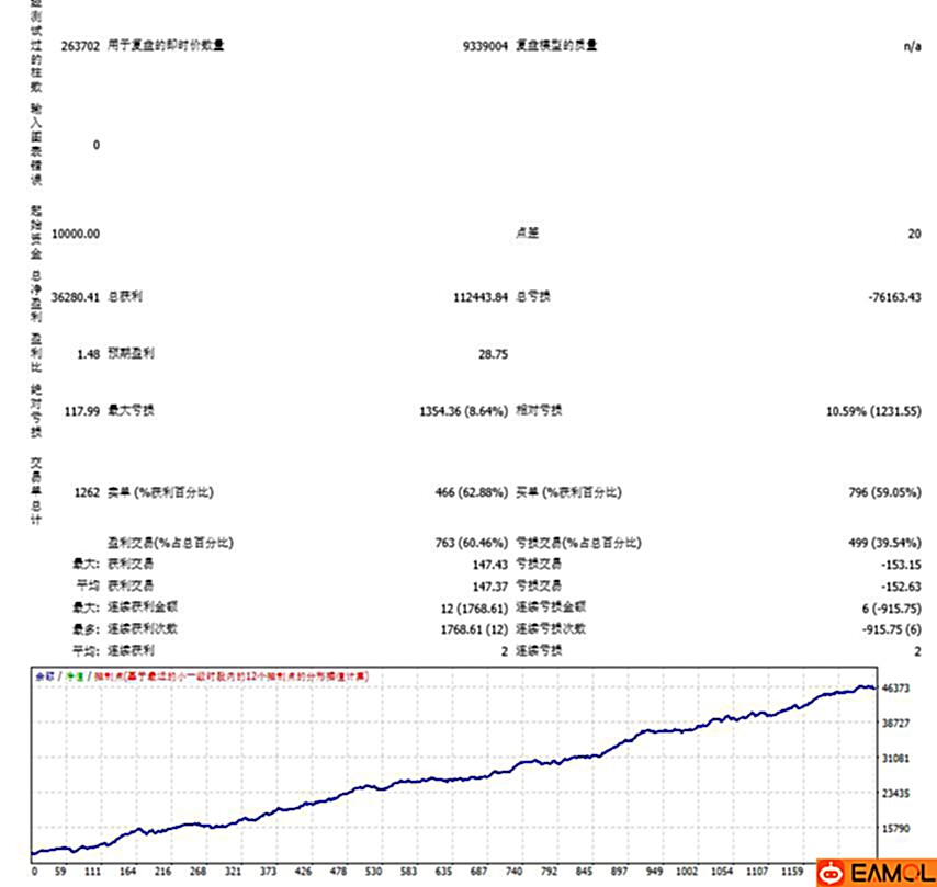 该EA是一次一单策略,测试下来盈利十分稳定,10年回测表明