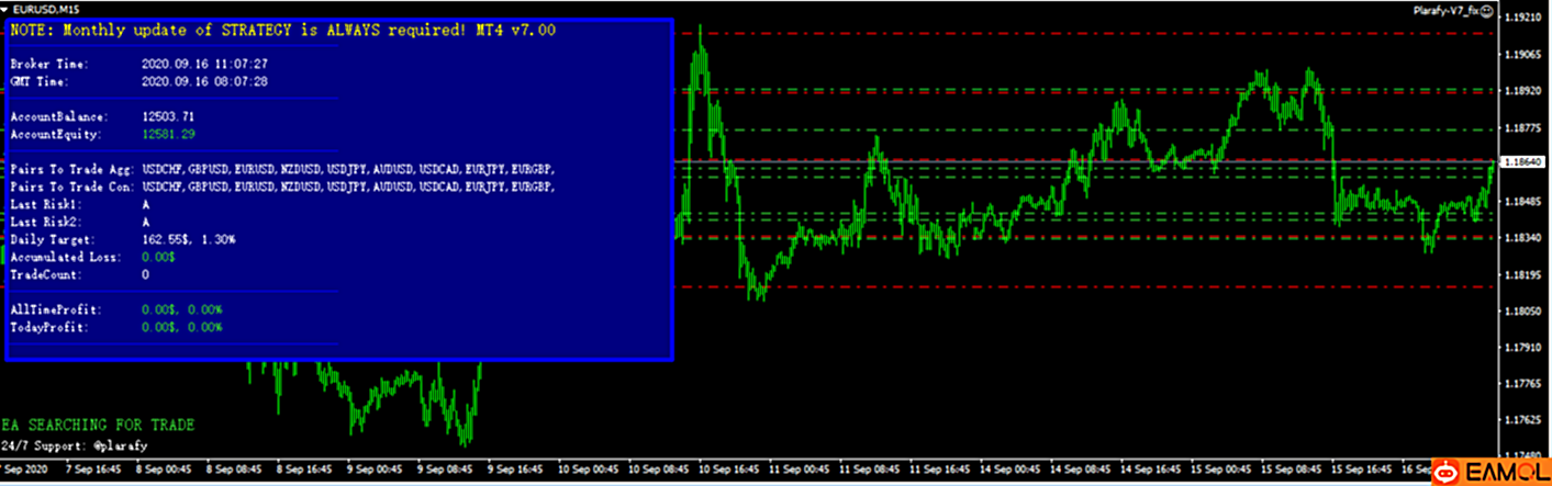 策略:如果单子亏钱会用马丁来补救,至到达到当天的盈利%。 可以选择1天盈利1%或5%。