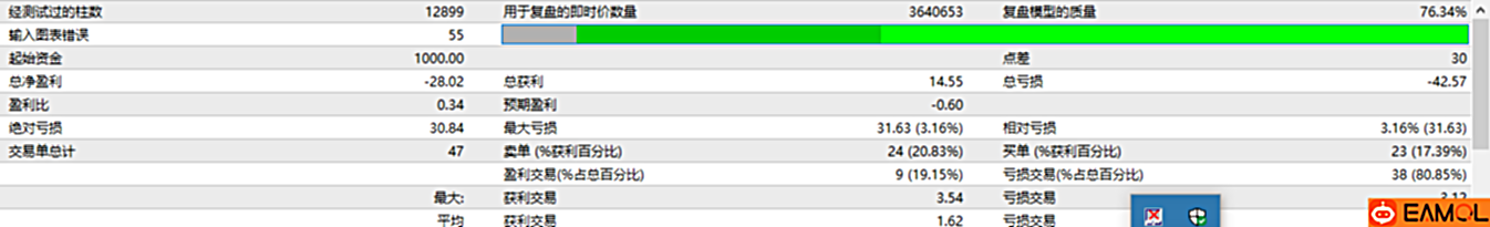 这个EA回测不怎么样,但是从回测的下单趋势看,如果加上移动止损保护设置,肯定能有百分之80的成功盈利。如果自己有资金管理EA,设置移动保护100点左右大概率都能盈利。