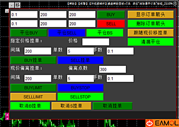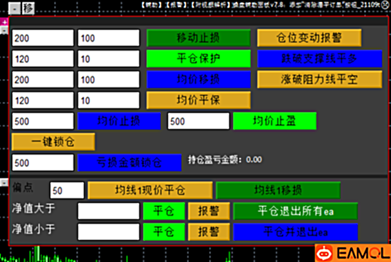 建仓、平仓、价格网格、取消挂单、偏离网格、移损平保、均价移损平保、均价止损止盈、一键锁仓、亏损锁仓、均线平仓移损、