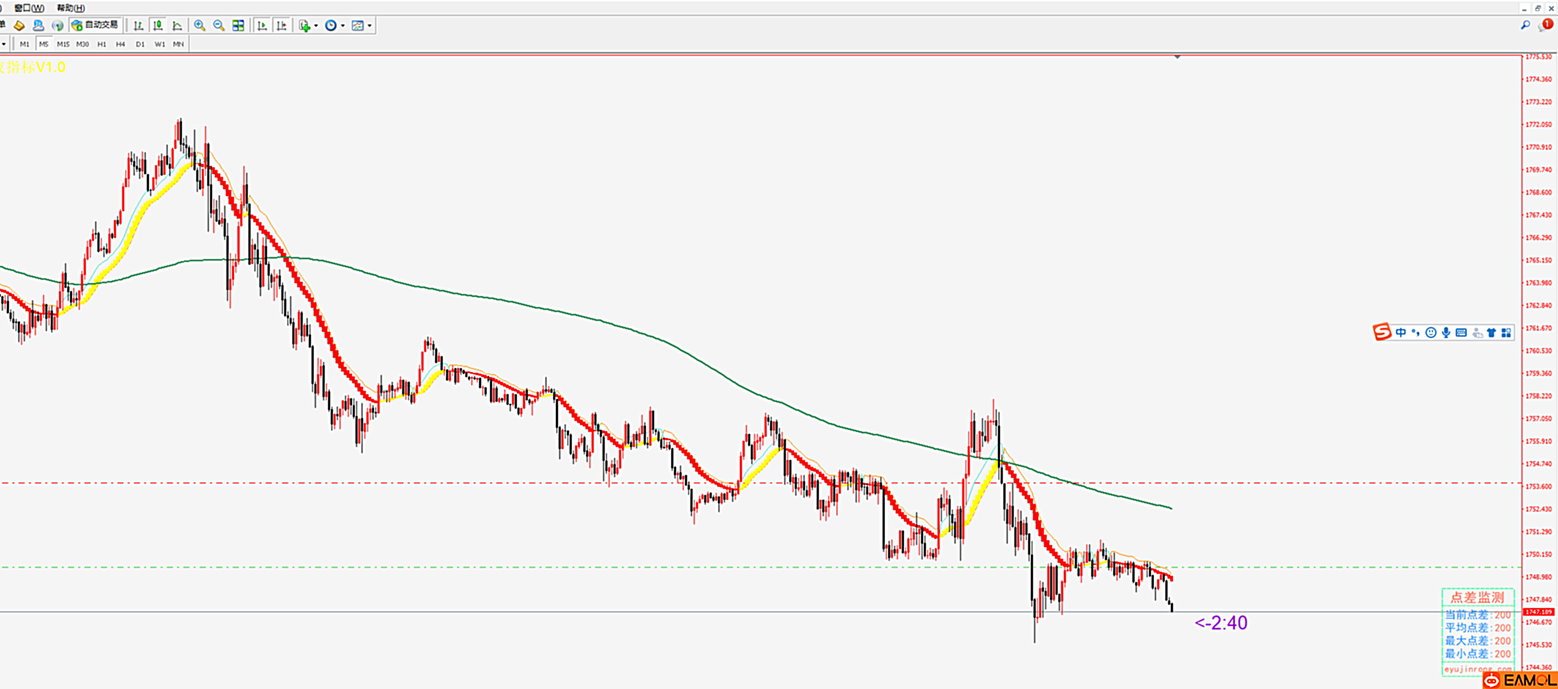 加一条200均线,等晚上美盘开盘后再做,线上变黄多,线下变红空,变色就平仓,
