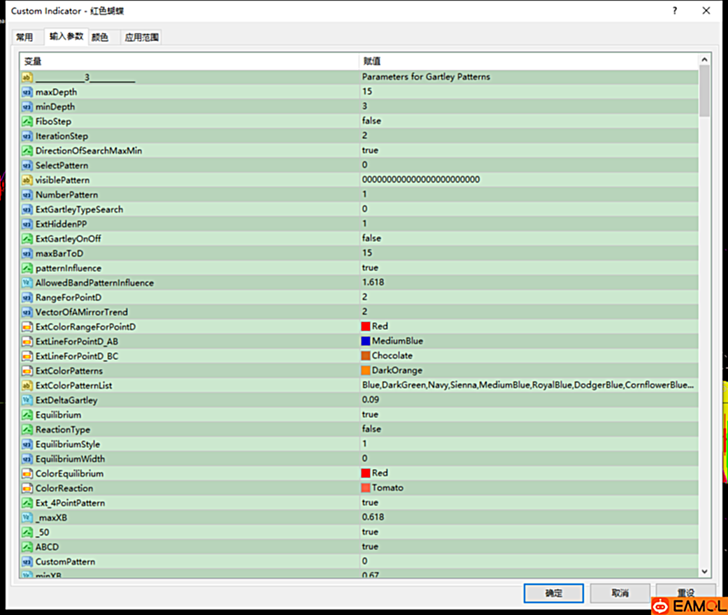 红色蝴蝶运用艾略特波浪理论,精确计算出菲薄纳奇回调比率,在回调0.5,0.786,0.618,和1.27,1.618处反手做单,是一个前位进出场指标。 下面是红色蝴蝶界面截图: