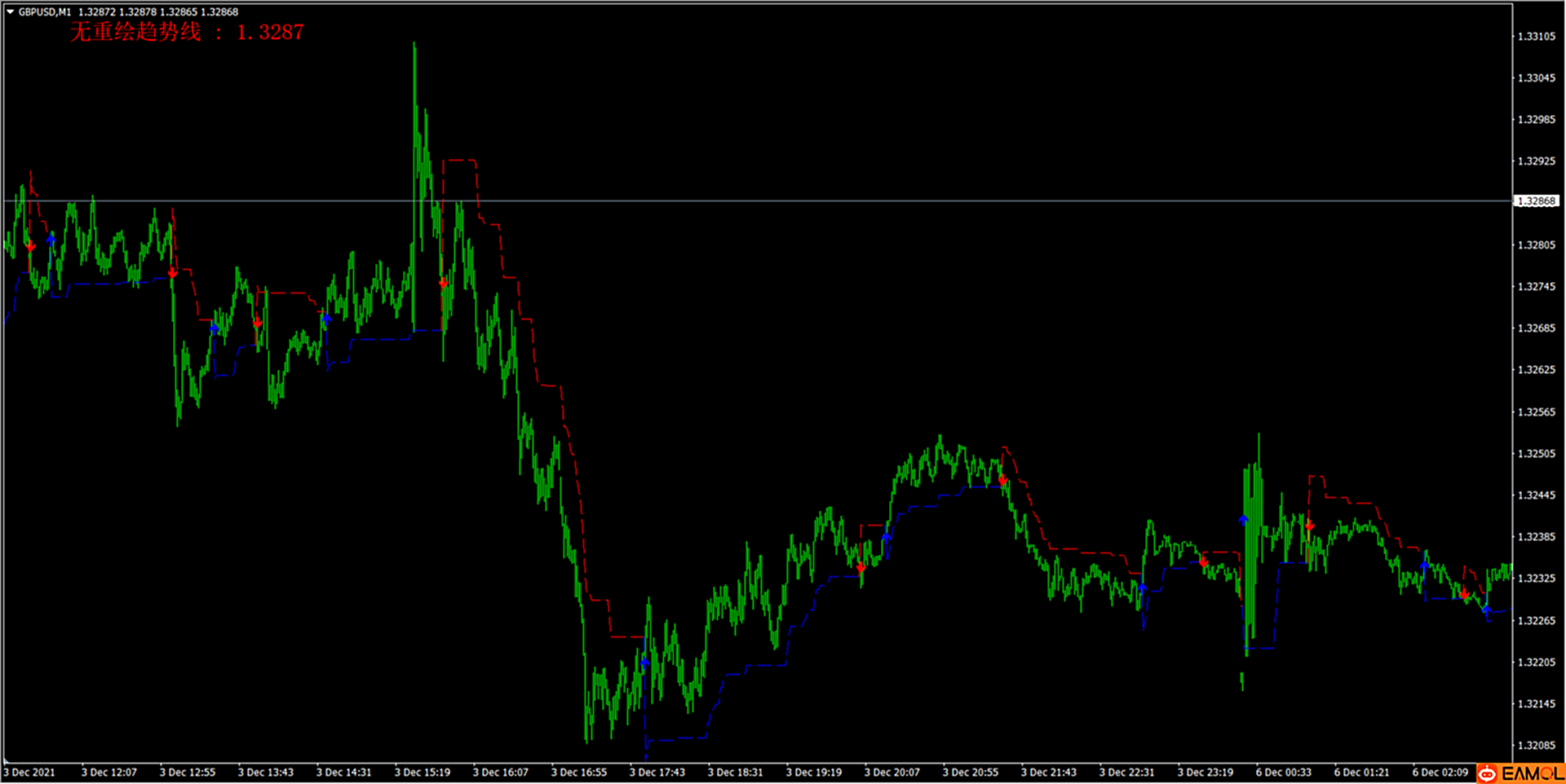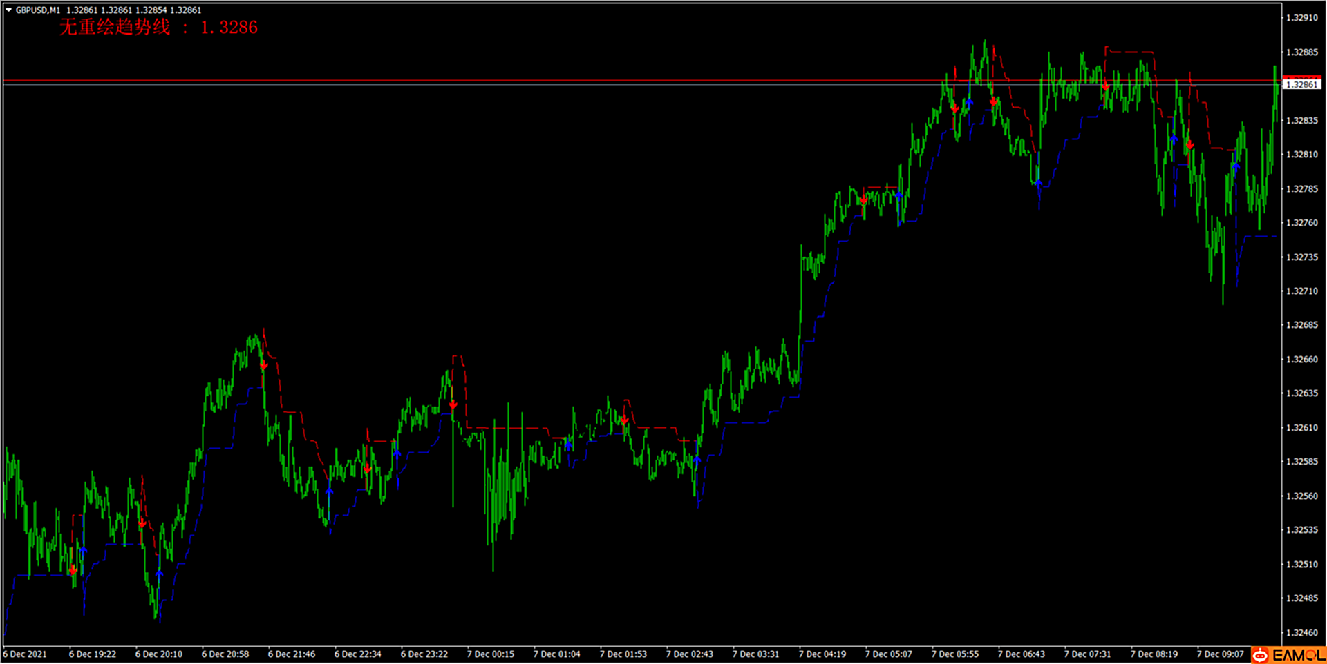■[SUPERTREND]指标是一款基于真实波动幅度均值(ATR)N倍的趋势自动跟踪止损型指标。