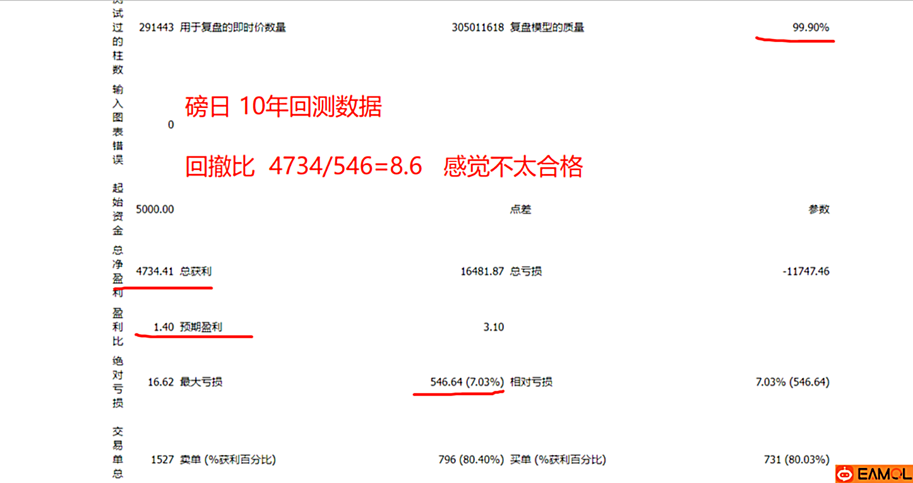 磅日:回测数据不算合格,本人就没使用在实盘,也许你可以调整出一个好的参数,在我的组合中使用的另外的磅日参数,这个ST参数只能做参考了 。