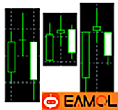 4、中间K线的最高价比其它两根的最高价高。