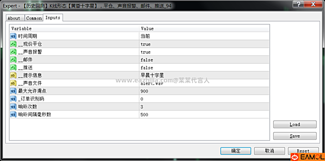 【黄昏十字星】形态收盘确认后,下根K线开盘时执行平仓、报警操作。