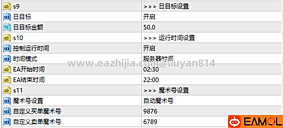 5、日目标功能:设定日目标盈利金额,到达目标则不再运行。