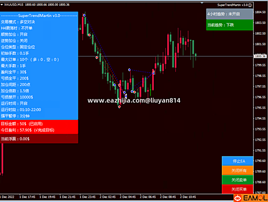 7、控制按钮:可手动关闭订单,也可停止EA运行。
