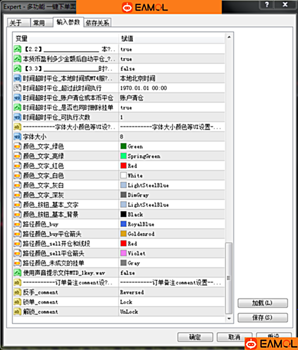 这款多功能全中文一键下单面板功能比较全面,需要的功能可以打开,打开的功能越多,面板上下越长,不需要的功能可以关闭,面版打开的功能越少,上下越短就少占用货币兑图表,根据自己的喜好设置即可。具有纯手工做单最需要的止盈止损、移动止损、一键平仓、账户风控、挂单等功能(需要可以打开,不需要可以关闭),文件属于EA文件,复制到 MQL4 Experts 目录下。 并在软件的设置界面勾选“允许实时自动交易”以及MT4客户端软件打开“自动交易”功能按钮即可正常使用。