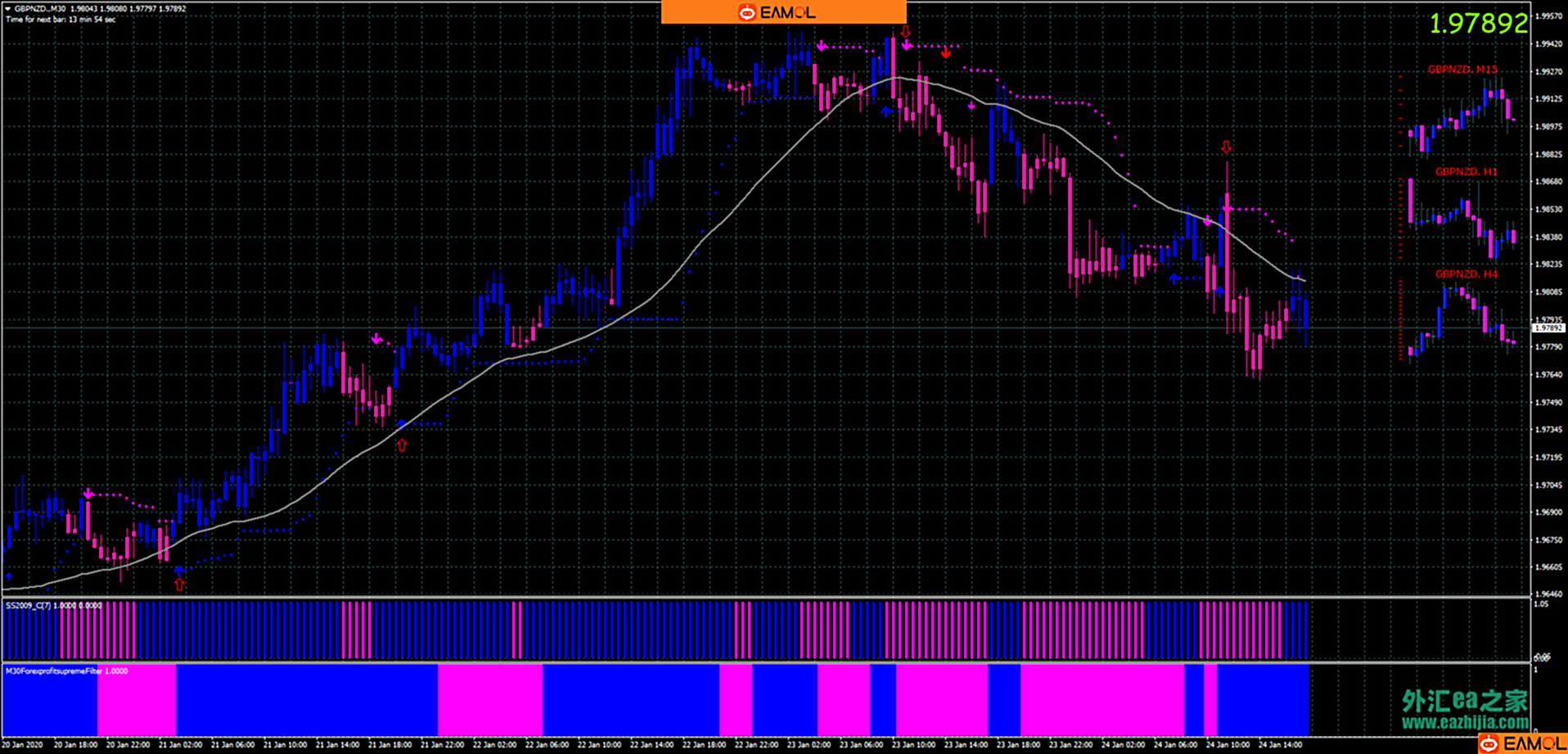 3、附图的SS2009 C指标和Forex Profit Supreme Filter指标显示为粉色柱子