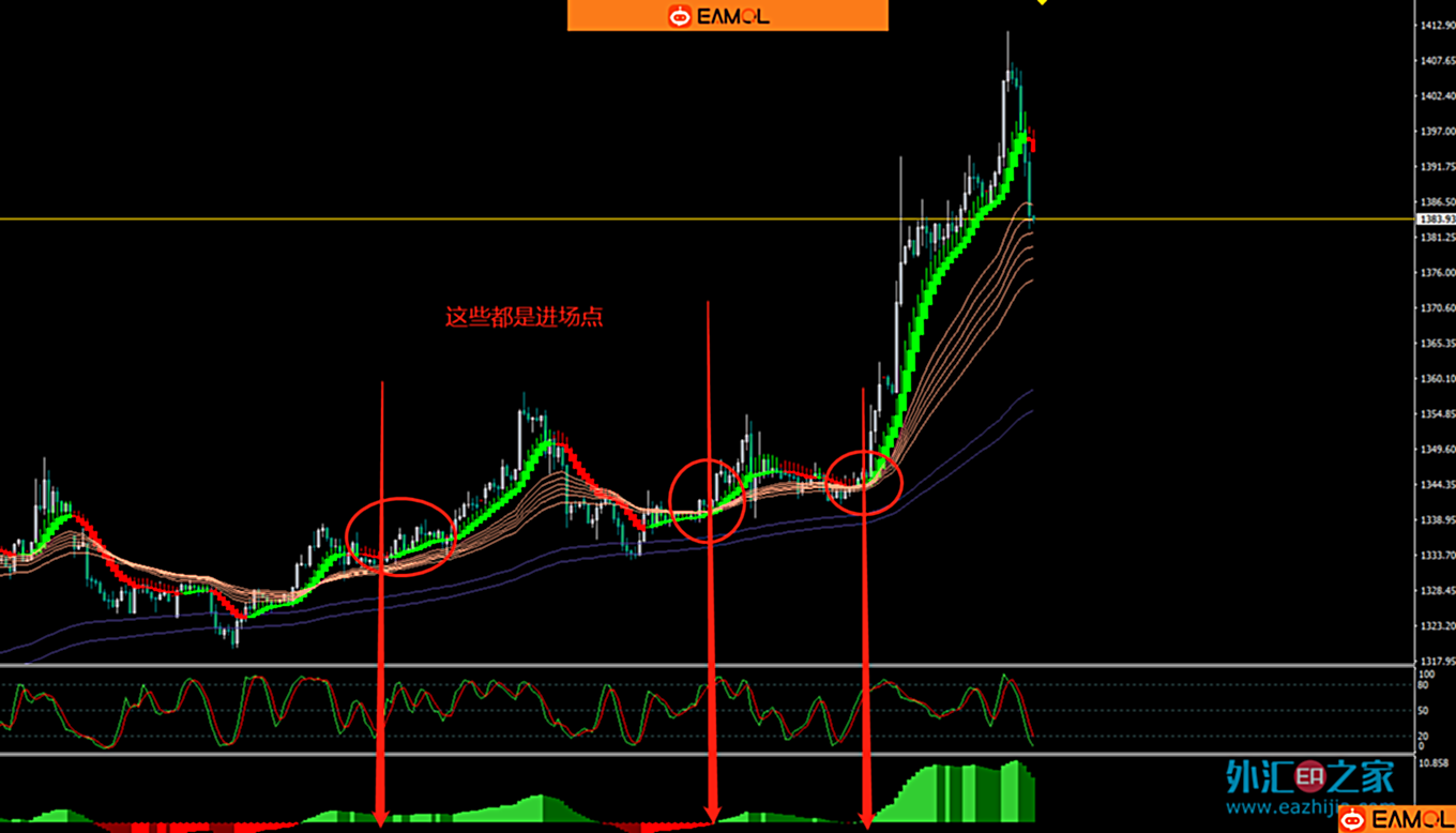 两条均线之上,下面是绿柱的基础上,上面变绿进多,做空就是反着的!操作简单