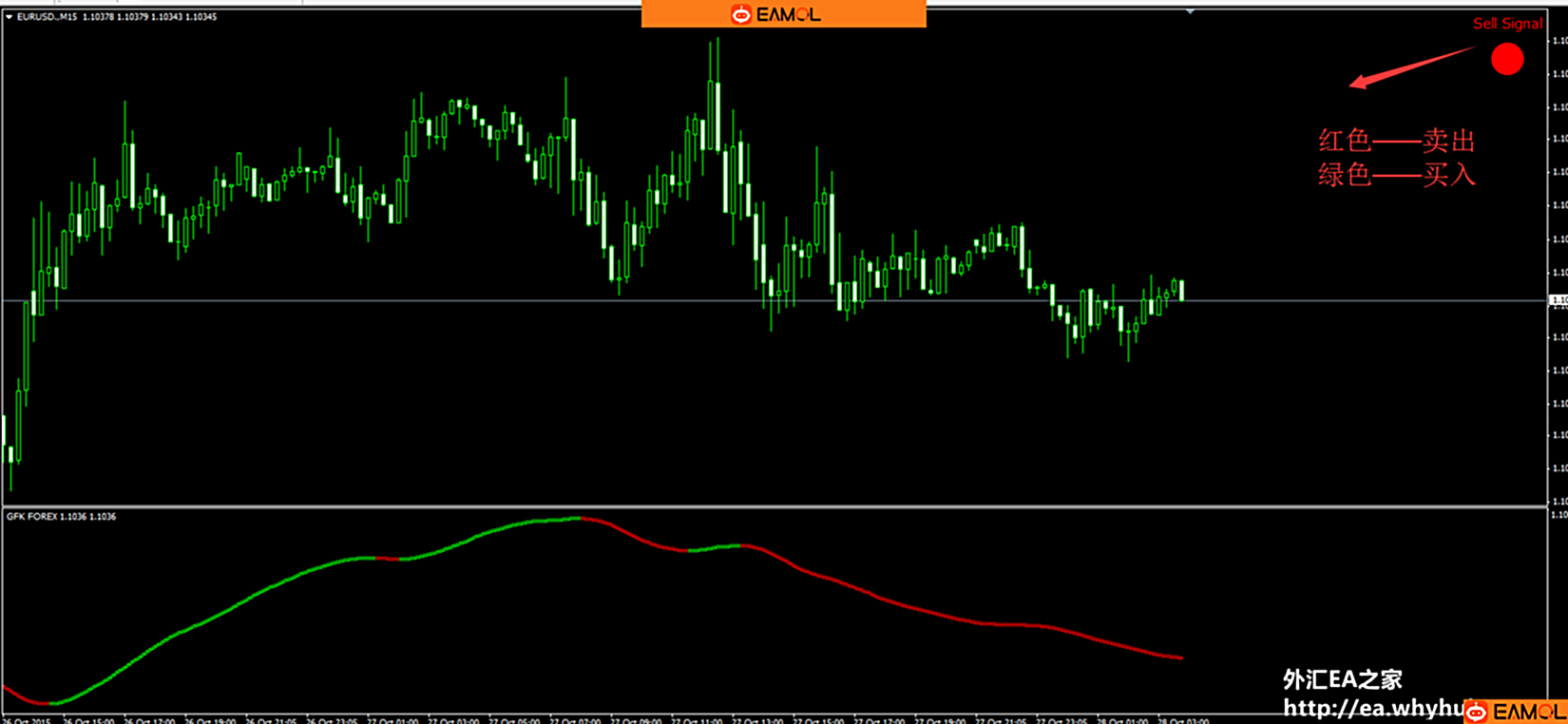# When to buy? You simply buy when indicator shows “buy signal” green circle , this can be seen when line color turns from red to green.