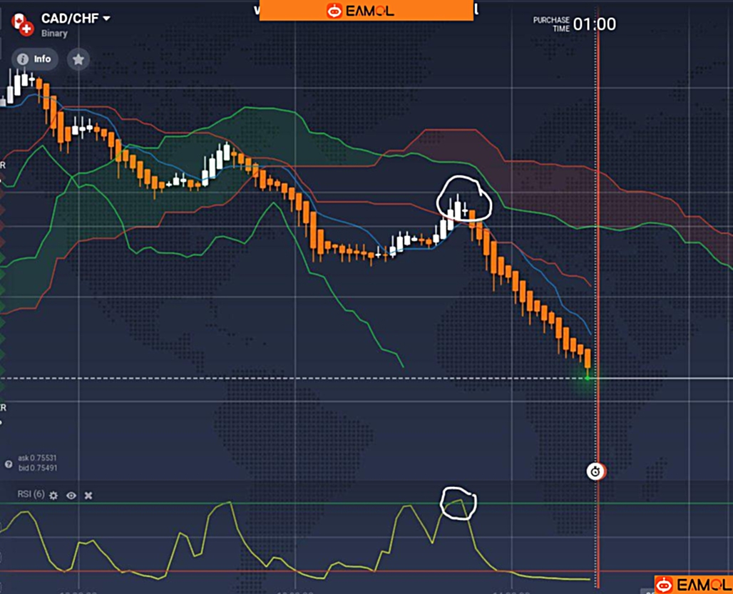做空:当价格收于云图下方,并且RSI处于超买