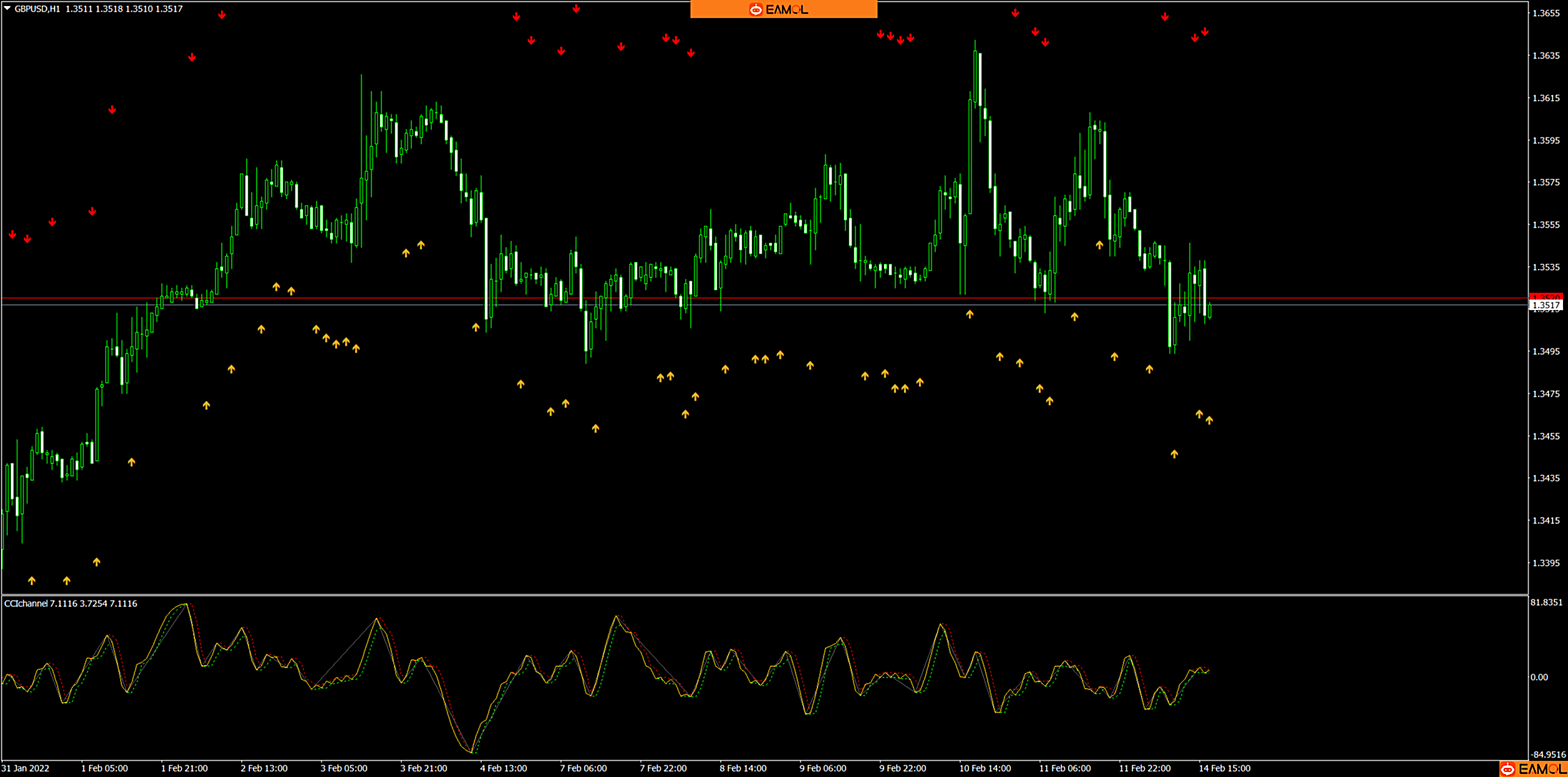 这是一个很好的不重绘指标,箭头在K线的开始出现,CCI的period设置的是2,high low period也是2。周期H1。