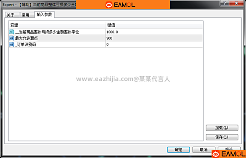 此ea的“订单识别码”参数默认为0,表示对商品的所有订单都执行操作,包括人工建仓的订单。如果在此参数中输入大于0的数字,则此ea只对【订单识别码】相同的ea建仓的订单执行操作。