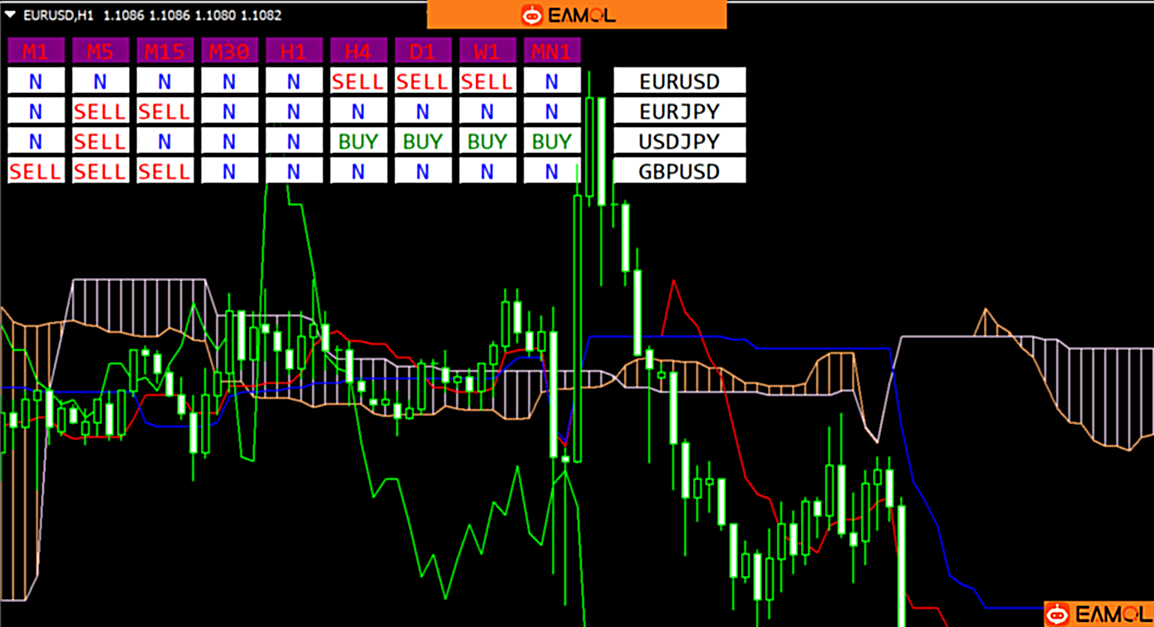 上升趋势判断:1、价格在云的上方2、Tenkan 和 Kijun 在云上方3、Kumo 看涨且呈上升趋势4、价格在Tenkan上方,并且Tenkan在Kijun上方。