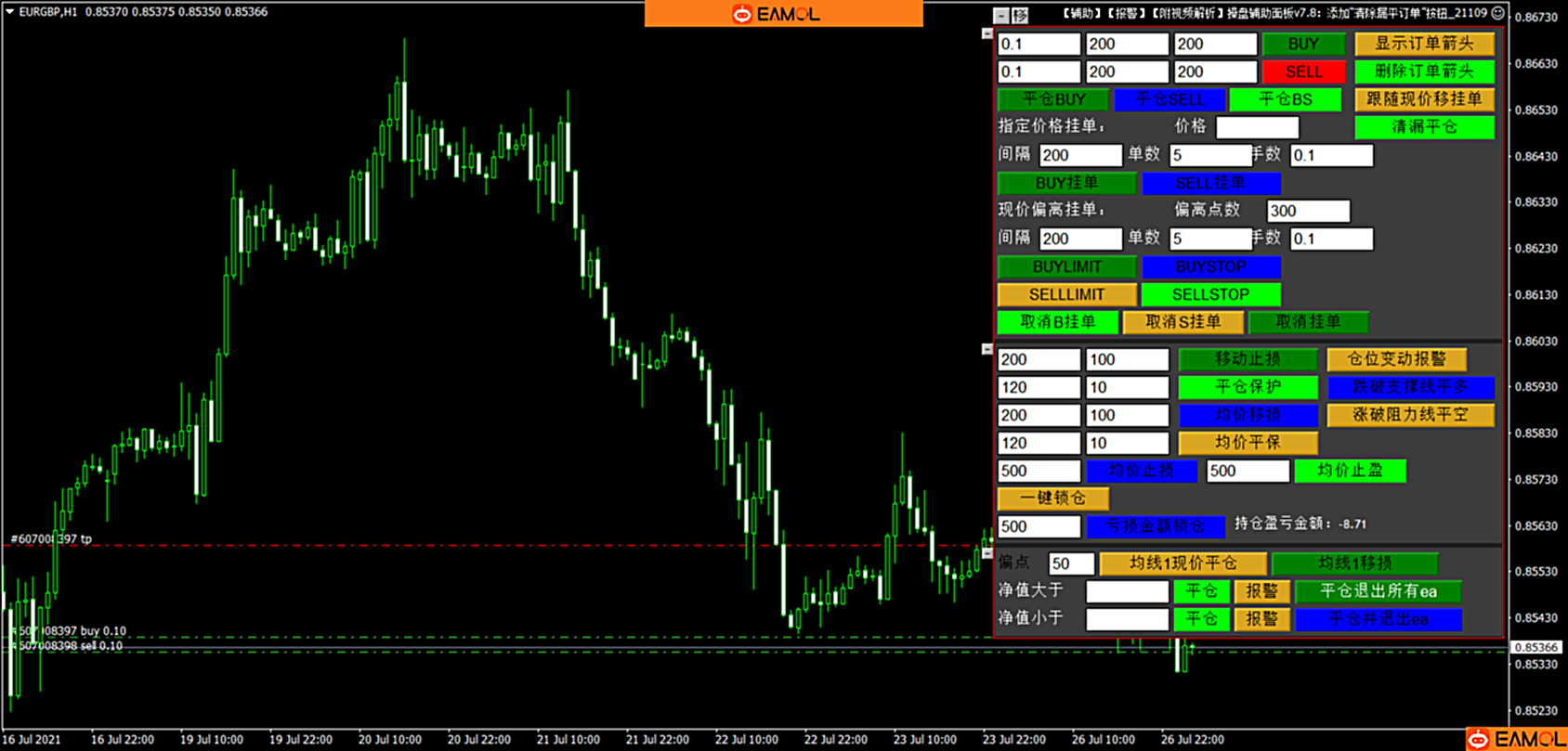 建仓、平仓、价格网格、取消挂单、偏离网格、移损平保、均价移损平保、均价止损止盈、一键锁仓、亏损锁仓、均线平仓移损、