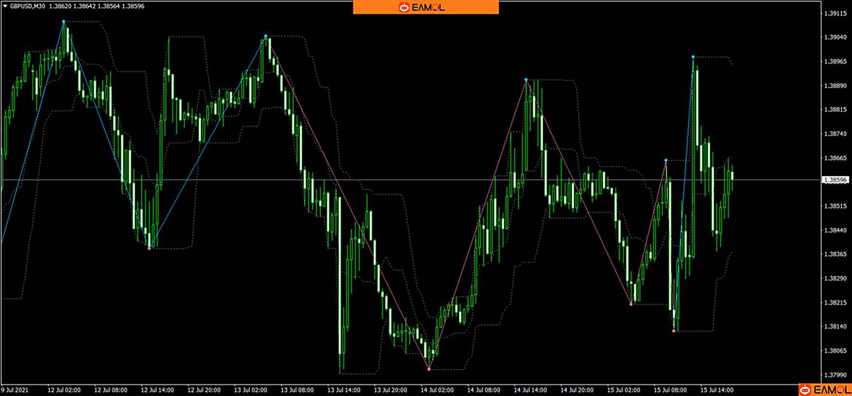 这是一个非常好的指标,不过和zigzag指标一样都是重绘的,所以最好和其他指标一起搭配使用。再次说下,重绘的指标不是一无是处的,你要懂得怎么去用好它。