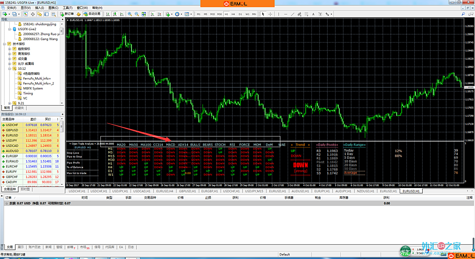 使用方法就简单了,我们看不同的周期,偏多的和偏空的情况,长线的话以大周期为准,短线以小周期为准。基本上如果都是DOWN那就是做空,都是UP就做多。红色就是空,绿色就是多,看哪个占优势。