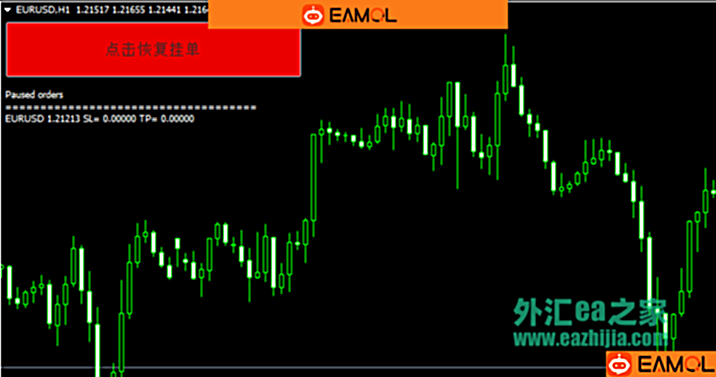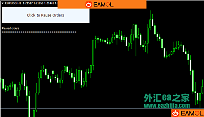 这个ea在新闻事件发布之前非常有用,因为我们很多人不喜欢交易新闻,当我们是挂单交易时,又碰到新闻事件时,就可以点击这个ea,让他临时暂停我们的所有挂单,当新闻事件过去后,再点击一次就可以恢复我们的所有挂单的。如果你想对所有货币对有效,那么就在ea的参数那里修改为true就行了。默认是false,只对当前货币对有效。
