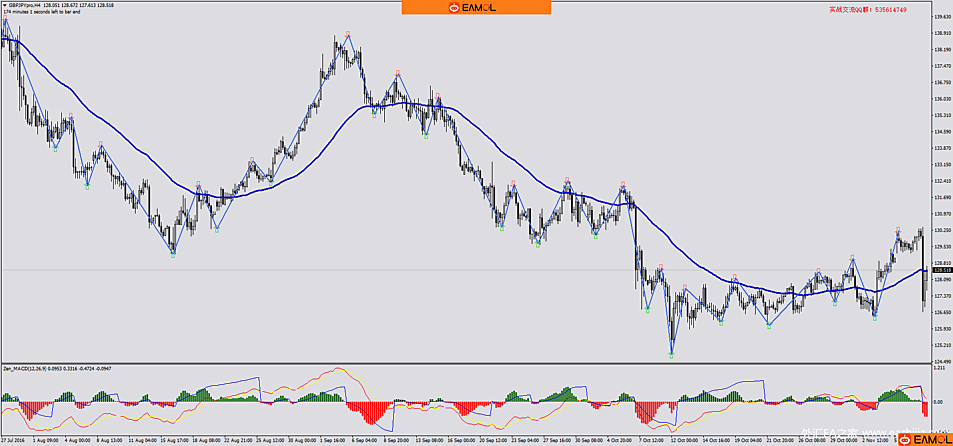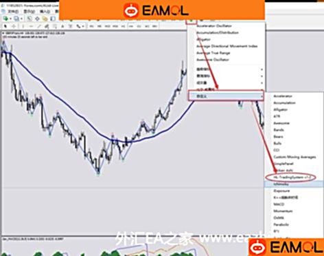 5. 重新启动MT4软件,选择自定义指标,如下图