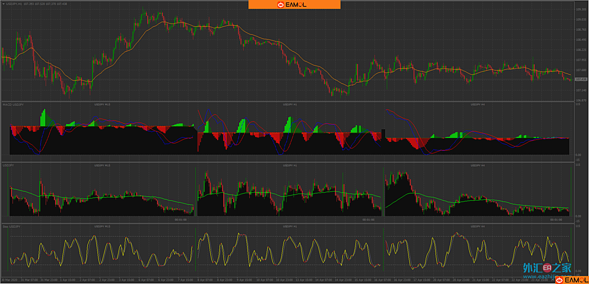 支持平均K、macd、stochastic、Trix、TrixhistK线支持M1到MN支持SMA、EMA、SMMA、LWMA支持自定义颜色