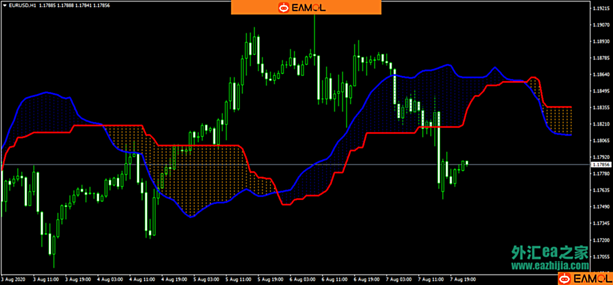 云图指标-Ichimoku kinko hyo 或一目均衡表指标,该指标是由笔名为Ichimoku Sanjin的日本记者在1930年代发明的,它是显示市场趋势,支撑、阻力位,还有买卖信号的一个指标,它一般多用于日图、周图等大周期上,若是短周期上交易,则效果没有大周期上的好。