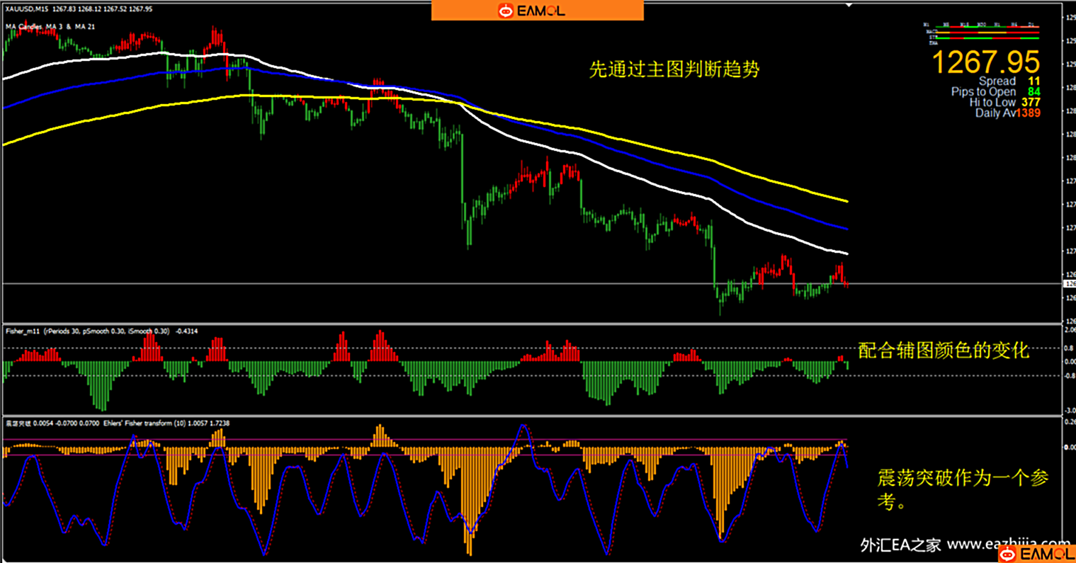 分享自用手动交易指标,主图指标判断趋势,变色入场,再变色出场。简单好用。