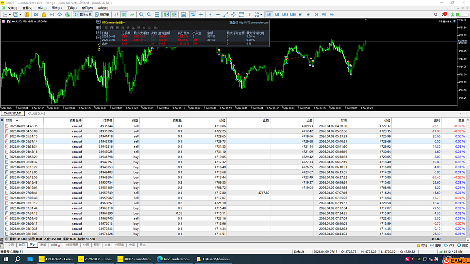 半自动EA交易,专注黄金每日黄金交易。
